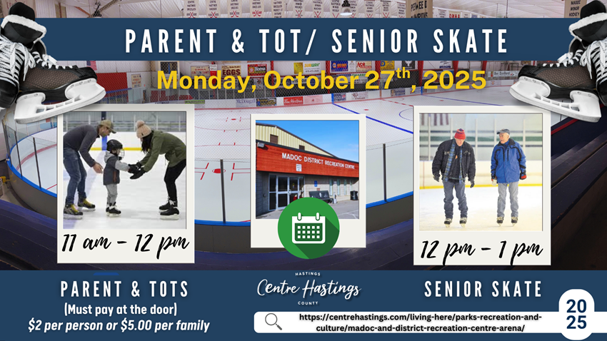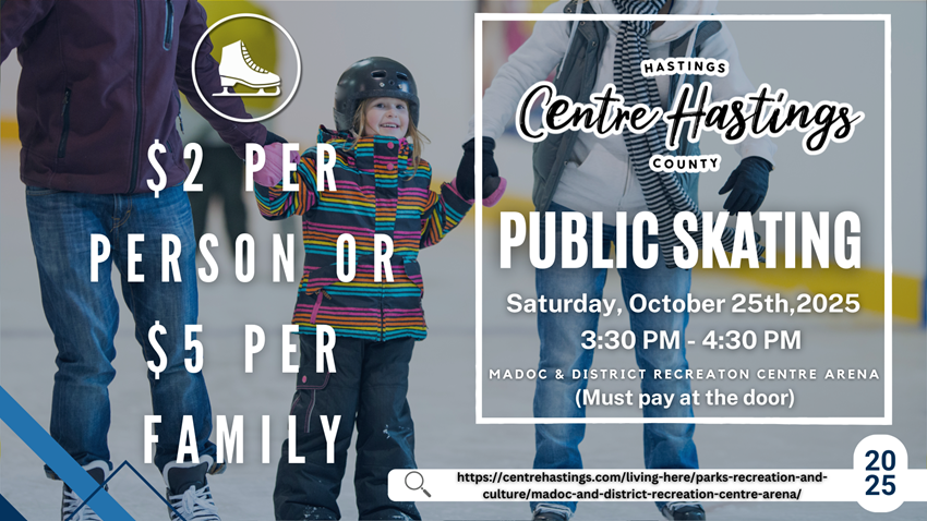 Come skate with us at the Madoc and District Recreation Centre Arena this Saturday, October 25th, 2025! From 3:30 PM to 4:30 PM, we’re hosting a lively public skating session.
