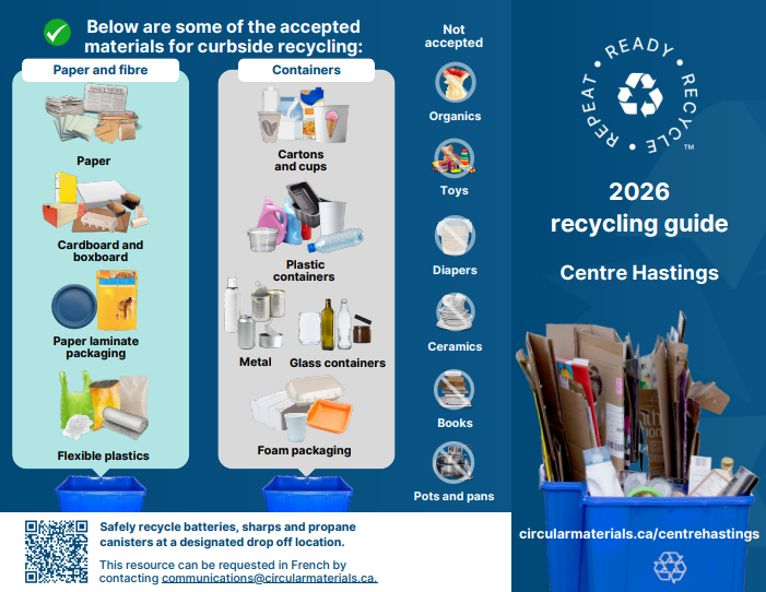 This change is part of a province-wide shift to a producer responsibility model for recycling. Under this new model, producers of packaging and printed paper will be responsible for the operation and funding of Blue Box programs. Please note that this decision was made by the Province of Ontario, not the Municipality of Centre Hastings.