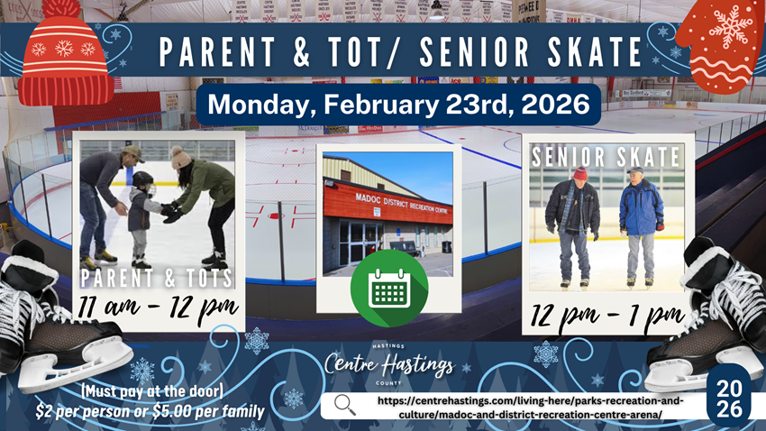 Winter is at its best when you’re skating! Come to the Madoc and District Recreation Centre Arena this Saturday, February 20th, 2026, 5:30 PM – 7:00 PM.
